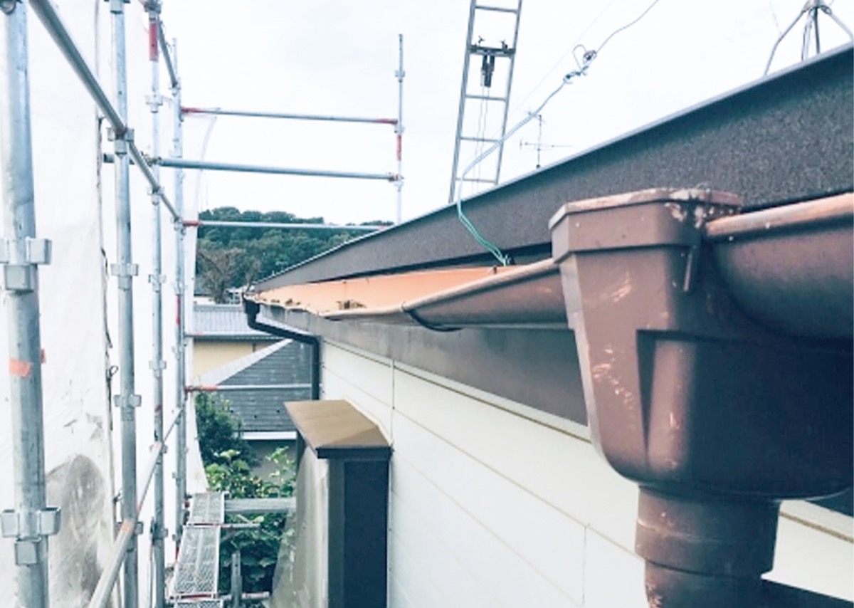 串田社長によると、交換の目安が20年〜25年と言われている雨樋だが、日当たり、寒暖差、強風などの影響で通常よりも劣化が早く進行することも少なくないのだとか。