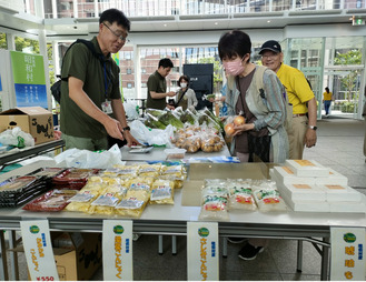 横浜市と友好・交流に関する協定を結ぶ山梨県道志村と群馬県昭和村の特産品販売などのイベントが横浜市庁舎1階アトリウムで6月24日に始まり、25日まで開かれている。