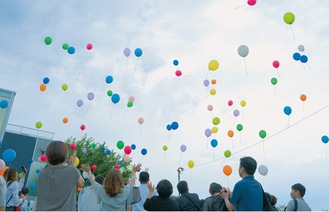 第2部は会場を同センターに移し、バルーンリリースを実行。直前まで降っていた雨が止み、色とりどりの風船が空に吸い込まれると参加者からは歓声が上がっていた。その後は教室で同窓会が開かれ、それぞれ思い出話に花を咲かせていた。