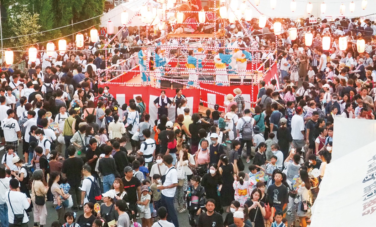 中山商店街協同組合(大氣誠道理事長)主催の「大盆踊り大会」が7月27日に、中山駅南口駅前第1駐車場で開催され、大勢の人出でにぎわった。会場にはかき氷やヨーヨー釣り、お面を販売する露店が並び、長蛇の列ができていた。