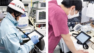 このような状況の中、消防局では活動時間の延伸解決のため、DXの導入を検討。今回の実証事業では、これまで電話や紙の書類で行っていた傷病者の受入確認や、医師引継ぎにタブレット端末を活用。搬送現場の救急隊員と病院の医師が傷病者の基礎情報等のデータを共有し、受入の可否を口頭で確認。また、医師引継の際も医師の署名等をタブレットで行うことで時間の短縮を目指す。