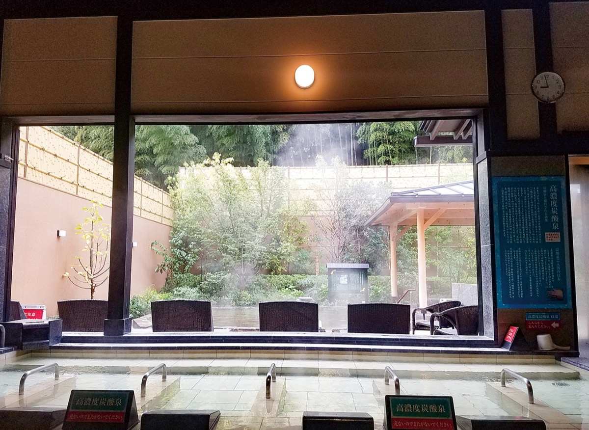 泉質は、「ナトリウム―炭酸水素塩・塩化物温泉」で弱アルカリ性。関東南部の温泉に多い「黒湯」と呼ばれる褐色の湯が特徴。化粧水にも含まれるメタケイ酸が豊富で「湯に触れてみると肌に優しく、しっとりするのがわかるはず」と千明慧店長代理。「竹林を眺めながら、温泉の露天風呂で癒されてほしい」。