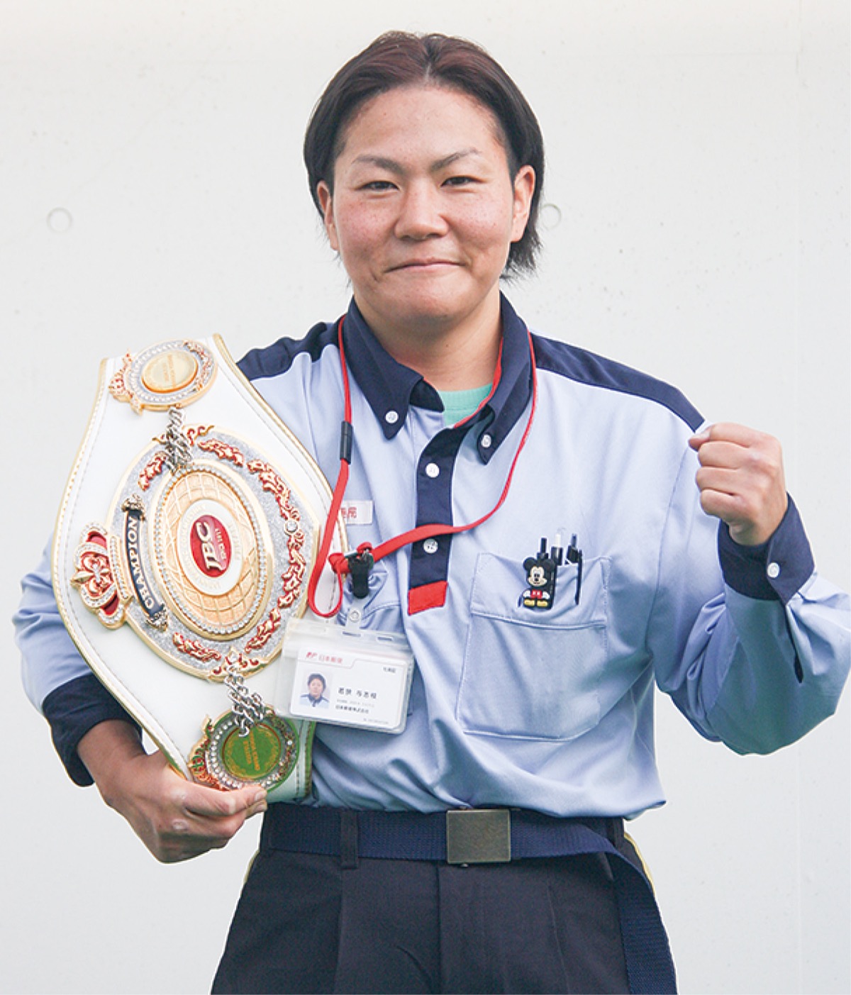 都筑区内の花形ボクシングジムに所属している若狭選手。週6日、ジムでのトレーニングに励む一方、日頃は中山にある緑郵便局で配達員として勤務している。