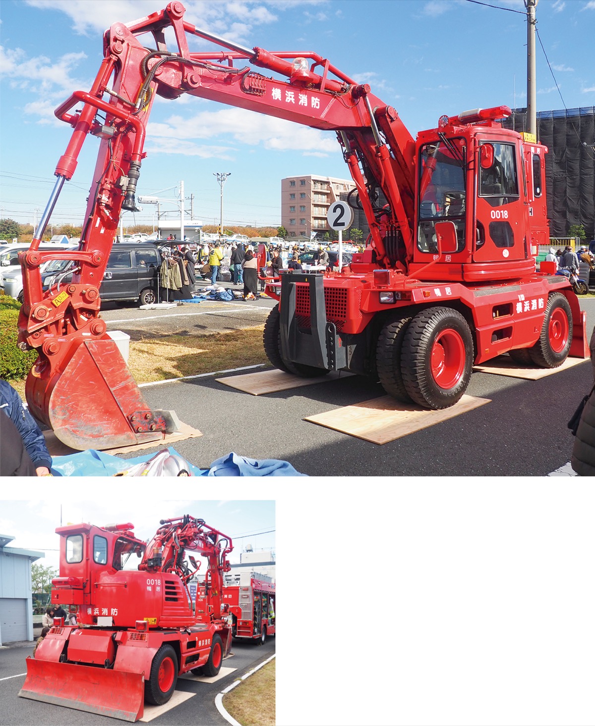 排除工作車は災害現場での救助救出活動などを主な目的とする車両。震災時の倒壊建物の排除や破壊、風水害時の道路の障害物撤去などにあたる。悪路等を考慮した四輪駆動で、油圧ショベルや鉄筋カッター、油圧フォークなど、アームの先のアタッチメントを交換することで、さまざまな災害に対応できる。
