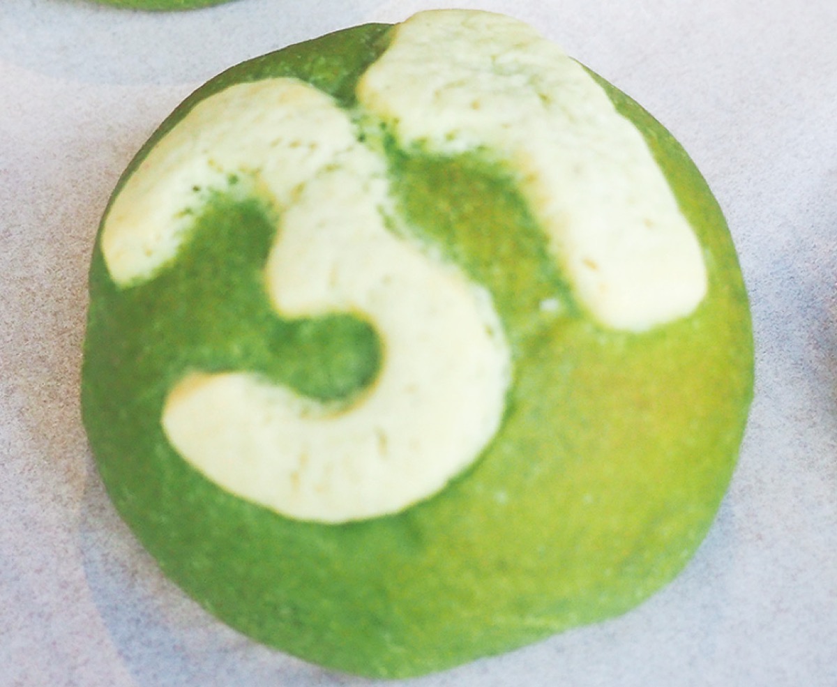 児童が考案したパンは名前が「31(さんいち)パン」。緑が多い中山の地域を表すため、生地は緑色に。表面にはクラスのマーク「31」をクッキー生地で乗せ、中には優しく温かいイメージを表すイチゴクリームを入れた。児童のアイデアを大宗さんが商品として完成に導いた。