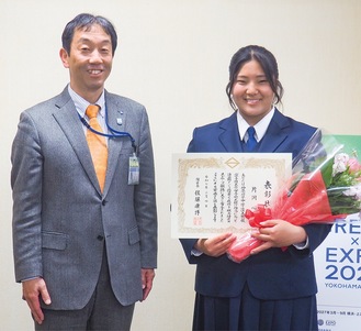 3月4日には神奈川県中学陸上競技選手権大会の女子砲丸投げ種目で連覇を達成した片岡心さんが区役所を訪問。佐藤康博区長から表彰状と花束が贈呈された。