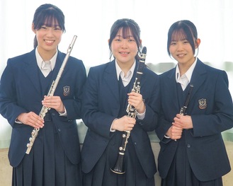 田奈中学校から出場するのは、稲村有純さん(ピッコロ)、多胡百菜さん(フルート)、伊藤梨結さん(クラリネット)で、共に3年生だ。2月に行われた音源審査による予選考会でそれぞれ高評価を得て、全国大会にあたる本選考会へと駒を進めた。