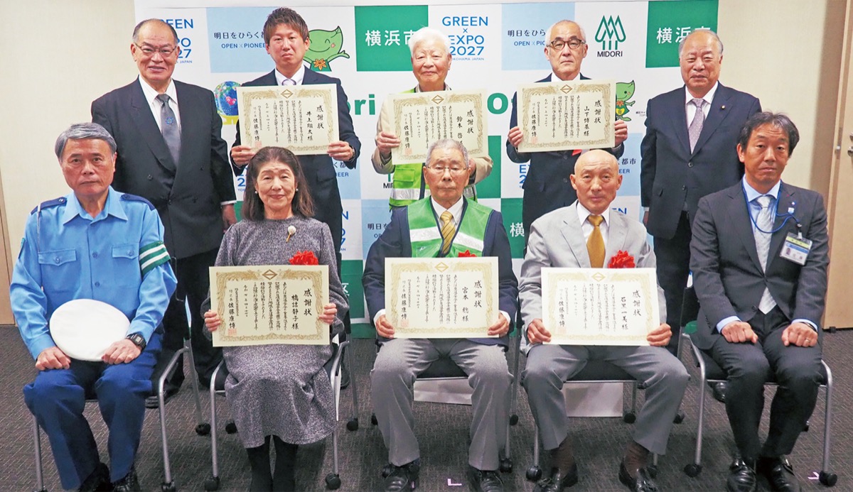 今回の功労者表彰受賞者は以下の通り(順不同、敬称略、カッコ内は推薦団体名)。石黒一美(長津田自治連合会)、橋詰静子(霧が丘連合自治会)、黒澤克則(緑交通安全協会)、根本秀一(緑交通安全協会)、山下博基(緑交通安全協会)、関隆之介(緑交通安全協会)、井上翔太(緑交通安全協会)、鈴木啓(緑区役所地域振興課)、宮本稔(緑区役所地域振興課)、清水晃(緑区役所地域振興課)