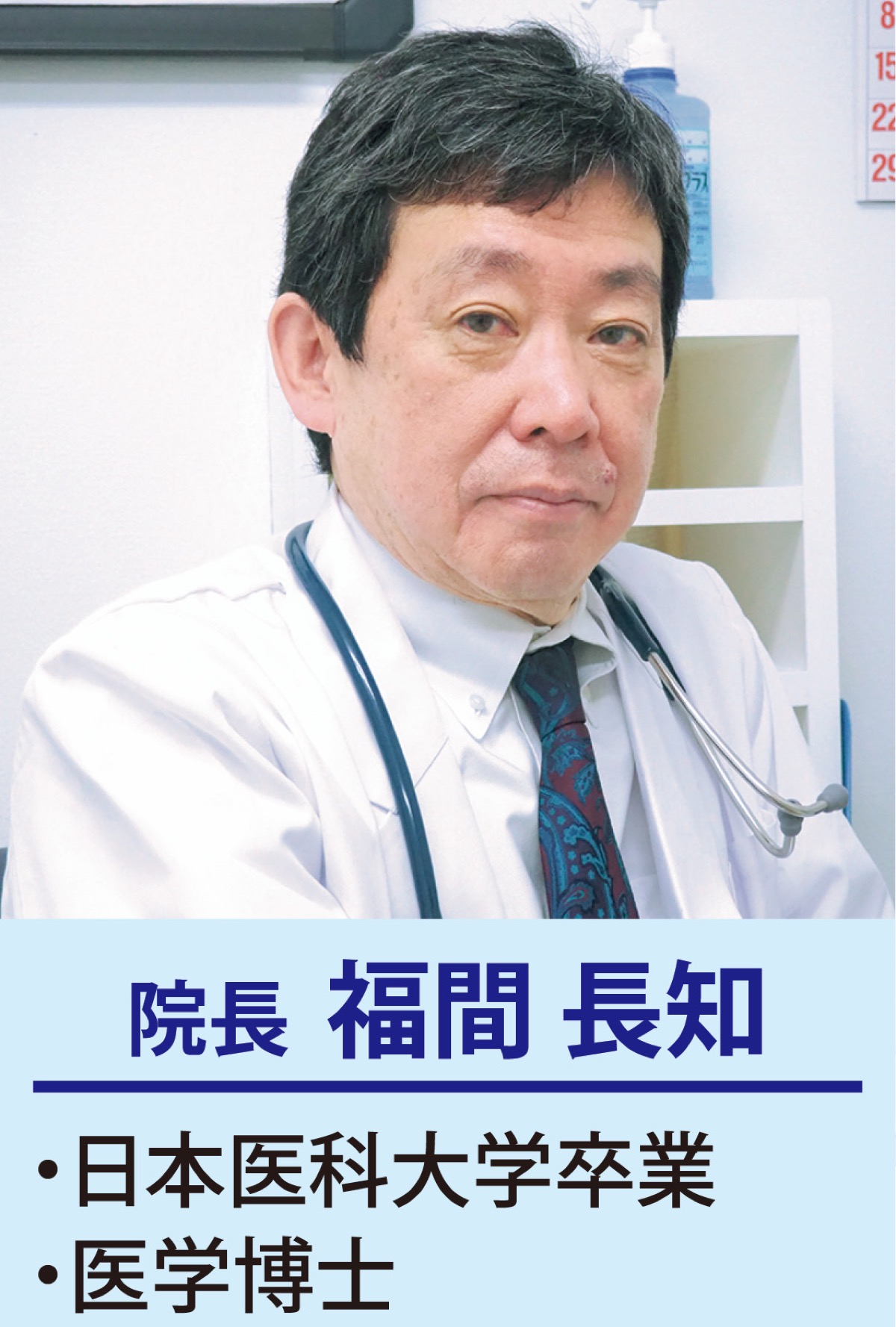 そのクリニックの院長に、この4月に着任したのが日本医科大学出身の福間長知医師だ。循環器内科医として、病態生理に関する研究に従事しながら、30年以上にわたり大学の外来で様々な患者を診続けてきた。日赤看護大学や薬学部の教授として、後進の指導にもあたっている。