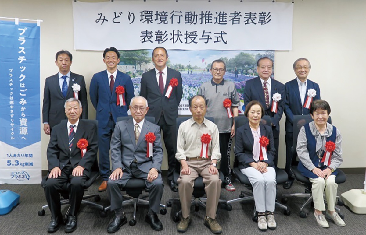 緑区は5月20日、地域の清掃や緑化など「清潔できれいな街づくり」に顕著な貢献があった個人や団体に感謝を伝える「みどり環境行動推進者表彰」の表彰状授与式を区役所内で行った。毎年実施しており、今年は個人の部で9人、団体の部で2団体を表彰した。