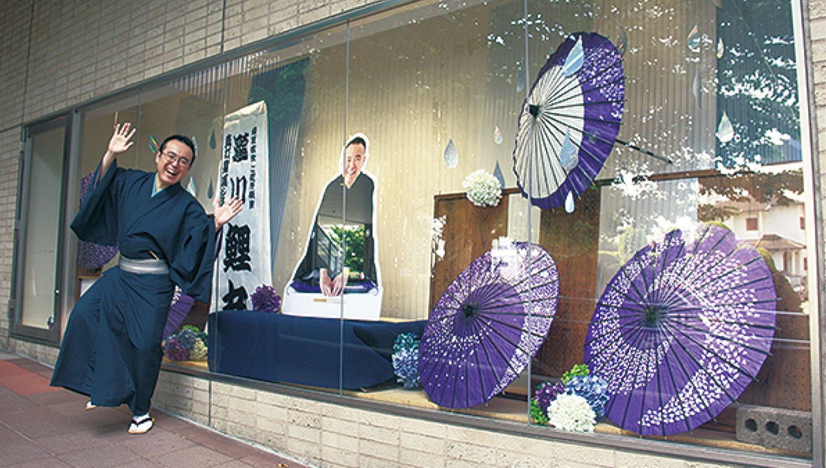 みどりアートパークの職員の女性は「もう感謝しかないです。落語家って世界に900人くらい。野生のパンダの数より少ない。パンダより希少な落語家さんがご近所にいてくれて、ずっと協力してくださっている。真打に昇進されたことがうれしくて、スタッフ一同大喜び。等身大パネルを作っちゃいました」と笑顔で話す。パネルは同館入口付近に設置してあるほか、同館のガラス張りの壁には、真打昇進を祝う特別な装飾を5月27日から開始。当面の間、季節に合わせて演出を変更しながら飾るという。