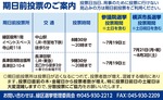 来週21日(月・祝)からは市長選の期日前投票が始まる(詳細は表)。8月2日(土)は混雑が予想されるため「分散投票にご協力を」(緑区選管)。
