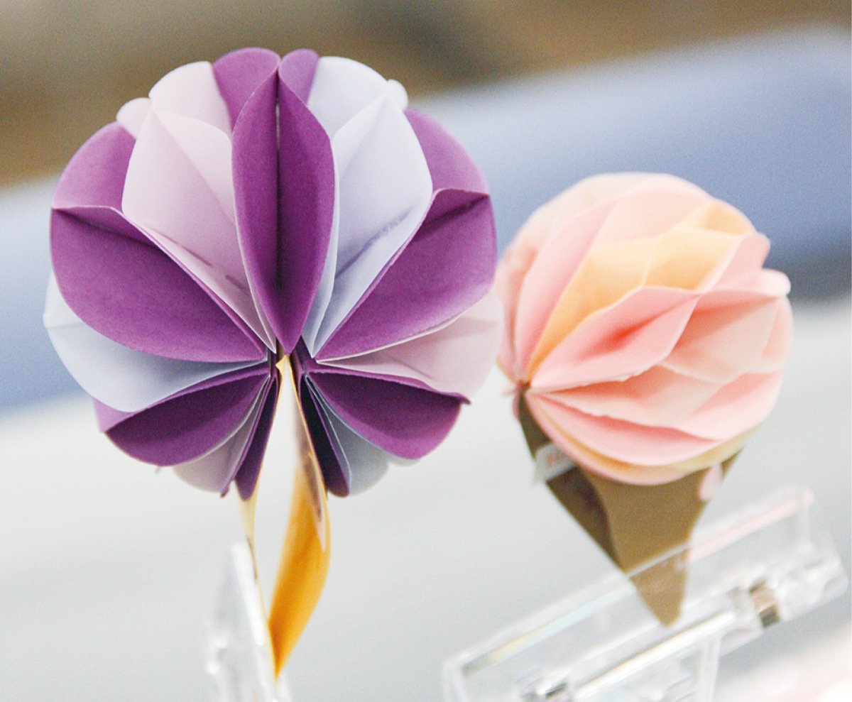 この日は、さまざまな色の紙を使った「アイスクリームカード」作りの講座も行われた。講師を務めた小池純子さんの指導で、子どもたちは紙を折ったり、ボンドで貼ったりしてアイスクリームのような形の作品制作を楽しんだ。