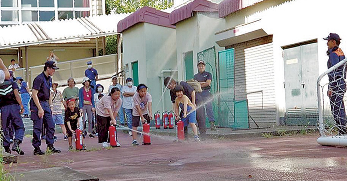 御幸通り自治会によると、今回は子どもをはじめ家族全体で取り組める訓練などが行われた。参加者たちは、緑消防署員らの指導で消火器の取り扱い方を学ぶなど、さまざまな訓練に取り組んだ。
