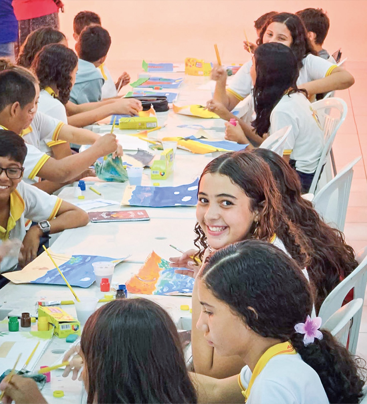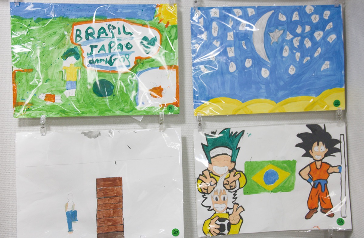 日本人の子どもの作品の中には、サッカーやバスケットボールを楽しんでいる人、好きなゲーム機などを描いた絵のほか、日本とブラジルの国旗を描き、その中間に赤いハートマークと「Love」の文字をしたためた作品もある。ブラジルの児童が制作した絵の中には、富士山やさまざまな楽器のほか、日本の人気漫画のキャラクターを描いた力作もある。