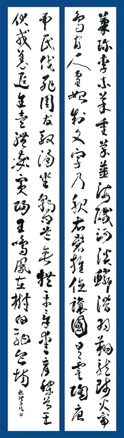 受賞した作品は、羊毛筆という先の長い筆をうまく使い、唐の書家・懐素(かいそ)(725〜785年)の『草書千字文(そう しょ せん じ もん)』を臨書(手本を見ながら書く方法)した点が評価された。もともと小筆で書かれた懐素の草書千字文を、羊毛の大筆で表現。太・細の変化がよく出る分、扱いが難しく、一番苦労した点となった。