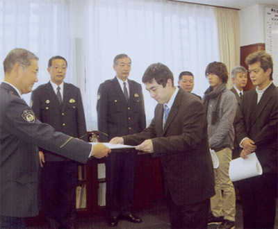 表彰を受けたのは中野拓馬さん(18)、久保田一義さん(38)、猪俣英樹さん(35)。
