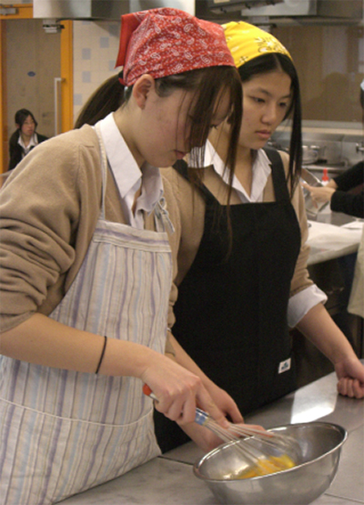 3年生5人が先日卒業した今、1年生女子12人が所属する同部。常ににぎやかな雰囲気だ。基本的に毎週木曜が活動日。3グループ程度に分かれ、各自で作りたいスイーツのレシピを探し、これまでは主に同校の調理室で焼き菓子などを作ってきた。