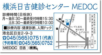 先月、港北区日吉に人間ドックや企業健診など多種の検査が可能な「横浜日吉健診センターMEDOC」がオープン。同センターは瞬時に、頭部や胸部など全身の16断面が同時に撮影できるCT装置や、触診では発見できない小さなシコリ、早期乳がんのサインである石灰化も明瞭に写し出すことが可能なマンモグラフィーなどの医療器具を備え、全身のあらゆる部分でより精度の高い検査を受けることができる。個々に合わせた健診メニューも用意されている。