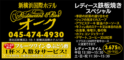 港北区の”逸品メニュー”のひとつが新横浜国際ホテル・オークの『レディース鉄板焼きスペシャル』だ。柔らかい牛フィレ、濃厚な味わいのアワビステーキなどの高級素材をふんだんに使ったランチ限定メニュー。「気軽に本格コース料理が堪能できる」と人気を集めている。