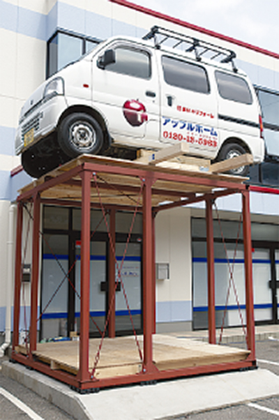 阪神大震災で2階建て木造住宅は、比較的新しい家でも1階がつぶれることが多かったとの記録が残っており(日本木造住宅耐震補強事業者協同組合調べ)「昨年の震災以来、耐震に不安を感じているお客様が増えていると感じ、新商品の開発に踏み切りました」(同社)。本社ショールームには、『安全ボックス』の実物も展示されている。まずは、左記までお問合せを。