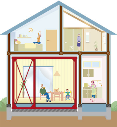 これは木造建物内の一部屋に鉄骨製のボックスを構築、見た目は普通の部屋と変わらない「シェルター」をつくるというもの。既存の建物を利用するので工期も約1週間と短期間。建物全体の老朽化が激しい場合、耐震フルリフォームを行うより経済的でもある。