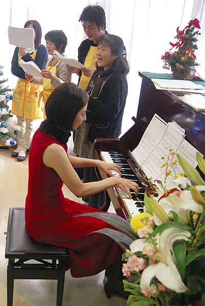 音楽コンサートや誕生日会など季節に応じたイベントを開き、入居者との交流を欠かさないサービス付き高齢者向け住宅「りりあマンション綱島樽町」。先日はピアニストの神三奈さんによるコンサートが開かれた。