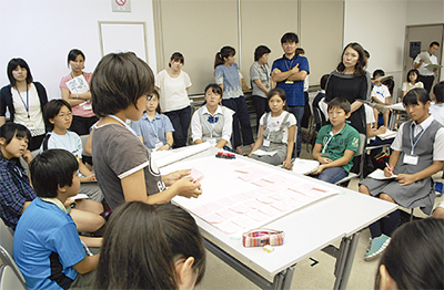 横浜市が今年度から開催する「横浜子ども会議」は、市立小中高校と特別支援学校を合わせた全512校から代表者を選出し、いじめ問題について、改善策を話し合っていくもの。先ごろ、各区で行われた会議で話し合った内容をそれぞれ持ち寄って、会議に臨んだ。「一人ひとりを大切にできる学校にするために」、「お互いを理解し合える人間関係をつくるために」、「すべての人が楽しいと心から言える学校にするために」、「児童会・生徒会として学校を盛り上げるために」の4つのテーマに沿って、8つのグループに分かれて話し合いが行われた。