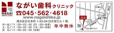 そんな時に便利なのが日吉駅徒歩4分の『ながい歯科クリニック』。年末年始も含め年中無休、しかも土日・祝日は夜8時、平日は午後11時まで診療している。