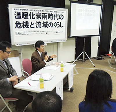 鶴見川流域センターで先ごろ、鶴見川流域水協議会が主催するシンポジウム「温暖化豪雨時代の危機と流域のくらし」が行われた。