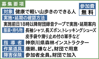 (公財)かながわトラストみどり財団が、2014年度の「かながわ森林づくり活動」へのボランティア参加者を募集中=表参照。