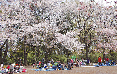 区内の桜観賞のスポットの1つとして知られる綱島公園。園内には満開を少し過ぎたが、まだまだ美しい花が咲き乱れる樹の下で、走り回って遊ぶ子どもたちや、家族や友人、仲間たちと楽しそうに持参したお弁当を食べたり、お酒をたしなむ姿があった。