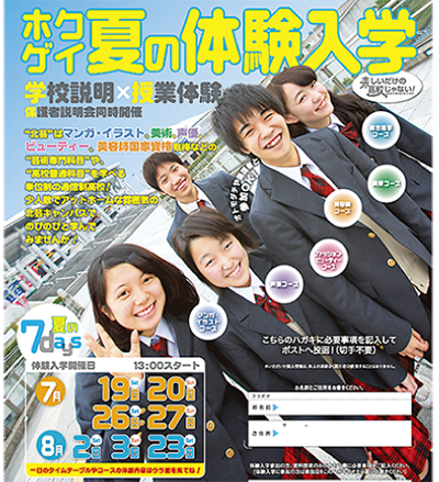 北海道芸術高等学校は、マンガやイラスト、美術、声優、ファッションなどの芸術専門科目の授業を、学校に通って学ぶことのできる通信制高校。新横浜にある横浜キャンパスでは、2015年度入学生対象の「夏の体験入学」を開催。参加の申込みを受付中。