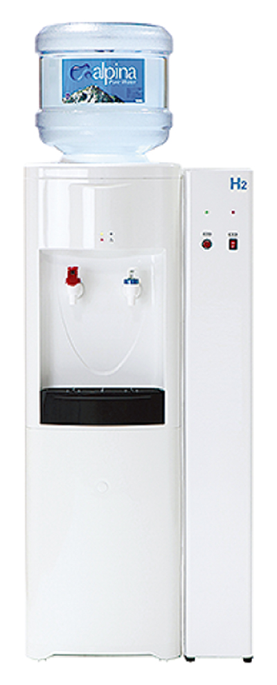 同社の天然水を原水とした最高品質のピュアウォーターが、業界最高レベルの3・4ppmの高濃度水素水になる。日ごろのウォーターサーバーの利便性はそのままにいつでも高濃度水素水を飲める。