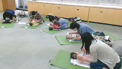 講師はチャイルドボディセラピストインストラクターとして活躍をする中田こず江さんが務める。日本歌曲や童謡などを取り入れたリトミック、歌いながらベビーマッサージを行う。赤ちゃんだけでなく、自分たちも笑顔になるレッスンと好評だ。