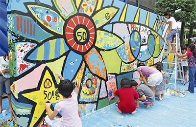 同校では創立を記念し、様々な取り組みを行ってきた。各クラスで学級目標などを書いたパーツをつくり、学校外観を表した壁画を体育館に飾った。このほかにも校庭のボールあて壁へのペイントも行った。ウォールペイントの創始者として知られるロコ・サトシ氏を招き、「夢」をテーマに児童たちが「漫画家になりたい」「科学者になりたい」「宇宙にいきたい」などを鮮やかな色を使いながら描いていった。