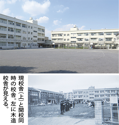 開校時から学校とPTA、地域が一体となり、学校運営を支えてきたのが良き伝統であり、校風だ。市内では珍しい図書館の設置、顕微鏡・各教室へのテレビ導入などは地域の有志が、「子どもたちの教育環境を整えたい」と願い、寄贈してきたもの。また、校歌・校章にも思いが込められており、校章は著名なデザイナーが手掛けており、校歌を作詞した永井鱗太郎は、児童劇作家として著名な人物。歌詞に「あなたもきみもハイ ハイ ハイ」や「新幹線」「夢」といった独自の世界観が反映されている。