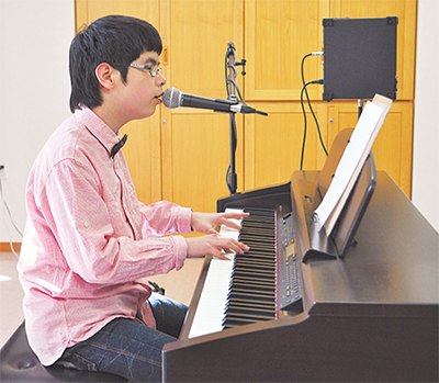 下田町在住の横浜市立盲特別支援学校に通う亀井康生君(12歳)が小学部を卒業することを記念し、3月27日、城郷小机地域ケアプラザでピアノ弾き語りライブを行った。