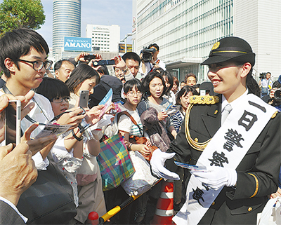 「ミキティ」ことフィギュアスケートで活躍した安藤美姫さんが4月29日、港北警察署の1日警察署長に就任した。新横浜駅前でイベントが行われ、集まった大勢の人たちに署長として交通事故防止、振り込め詐欺の撲滅を呼び掛けた。