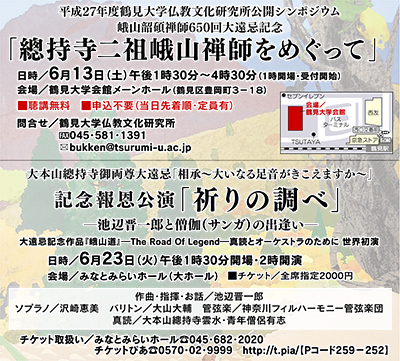 多数の總持寺僧侶らと、神奈川フィルハーモニーなどが共演する、又とない機会。残席はわずかという。詳細は左記枠内参照。
