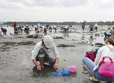 今年も潮干狩りの季節が到来し、横浜市金沢区の「海の公園」(シーサイドライン海の公園柴口駅下車)には多くの人が訪れている。シーズンは6月頃まで。