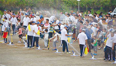 19回目を迎えた恒例の「ペットボトルロケット大会」が6日、鶴見川樽町公園多目的広場で開催された。