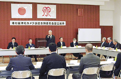 港北警察署で11月2日、「港北区防犯カメラ設置合同委員会」(畠山英治委員長)が設立された。県下でも犯罪認知件数が多い港北区だが、今回の取り組みは、犯罪発生の抑止力効果が高いとされる防犯カメラの設置を、民間主導で促進していることが最大の特徴。今後の推移に注目が集まりそうだ。