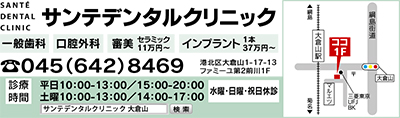 マルエツ大倉山店前(大倉山駅徒歩1分)に「サンテデンタルクリニック」が開院。7月1日、2日、3日の3日間、内覧会を開催し、歯の健康相談に関する受付を行う。予約不要で入退場自由。開催時間は午前11時から午後5時まで。