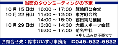 ※港北区・都筑区でタウンミーティングを開催しています(左の表をご参照ください)。ぜひ皆さまのご意見をお聞かせください。ご参加をお待ちしています。