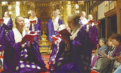 鳥山町の三會寺(さんねじ)本堂で10月29日、印融法印5百回忌 御待受 声明公演「聲(こえ)の燈(あかり)」が開かれた。