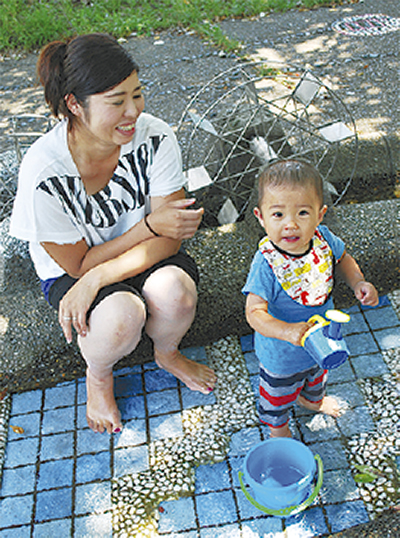 また、新田緑道内のじゃぶじゃぶ池に1歳2カ月になる陽都(ひろと)ちゃんを連れて水遊びを楽しんでいた藤井祐子さんは「ここは穴場なので週に2回くらいはきています」と笑顔で話した。