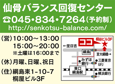 「仙骨バランス回復センター」(内山俊一院長)は、頭から背骨を支える土台で、骨盤の中心部分にある仙骨の歪みを優しい力で調整する「仙骨むつう療法」を専門にしている。事前に磁気による歪みの測定を行い、その結果をもとに歪みを調整する。