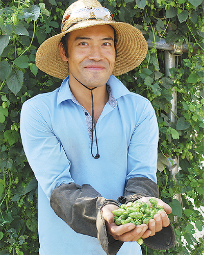 栽培した古川原さんは、東大農学部出身で5年前の2013年より新規就農。区内高田ほかで農園を運営し、収穫した無農薬野菜を一番美味しいその日のうちに店舗に届けることにこだわる。「今回の試みで横浜の農業をより盛り上げていければ」と話す。(株)横浜ビール醸造長深田優さんは「生のホップは、収穫後24時間以内に仕込みを行わないと香りが飛んでしまう貴重な商品。今回は仕上げに香りづけとして使用、出来上がりが楽しみです」。問い合わせは(株)横浜ビール【電話】045・212・9633へ。