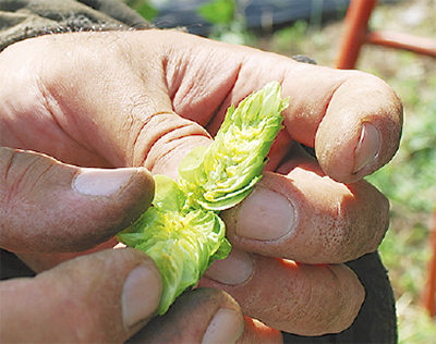 「ホップ」とは、ビールの苦み成分となる原料で、通常は保存のため、収穫後、乾燥・粉砕し、ペレット状に加工されたものが使われている。最近では、生のままの採れたてホップを使用して仕込んだ「フレッシュホップビール」がビール業界で注目されており、苦みや香りが華やかで味のよいビールができるとされる。